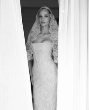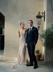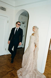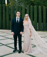 During NYFW in September 2025 I was able to try on gowns at KYHA Studios on Bond Street. Prior to this it was mainly planning and ideas for what I wanted. I brought my stylist Georgina with me to see all the possible looks and styles we could have for the big day. I knew I wanted a lace gown with a lace veil, and the KYHA team exceeded my expectations. I loved the thought of having a blushy nude dress instead of the traditional white for the vow renewal and my Gibson Gown came out perfect. The entire KYHA team was lovely, I couldn’t have asked for a better partnership.